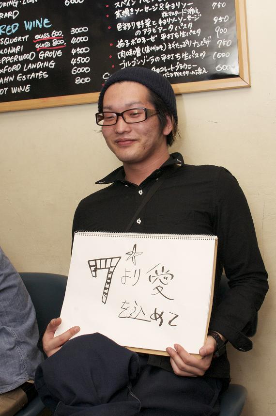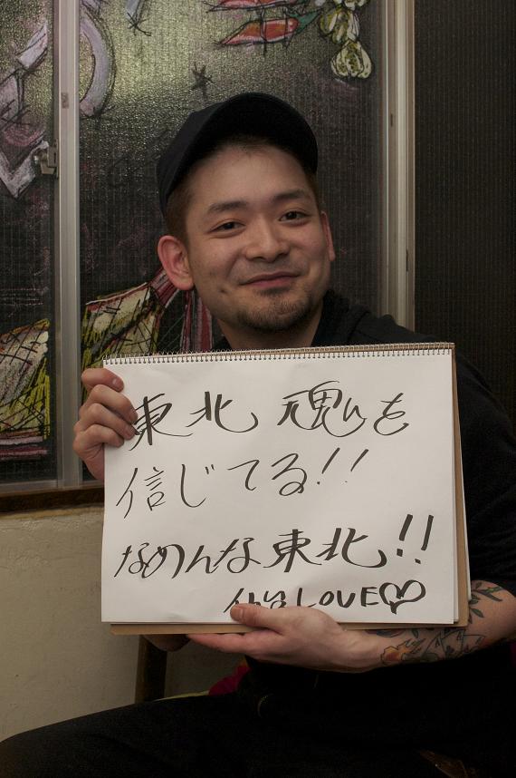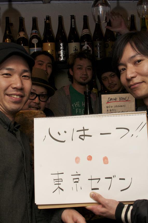 先日、東京セブンを会場に開催された東北地方太平洋沖地震震災チャ リティーイベントの報告をさせて頂きます。 以下、文章は主催者のハセさん、モリさんより。 震災から二週間ほど経ち、東京都在住宮城県民ハセ(仙台市)とモリ (気仙沼市)が話しをしました。 内容はお互いの家族・友人の近況報告。 モリは、やっと家族の安全が確認できたけど地元、気仙沼は酷いらし い、、。 東京に住んでる僕達ですら、被害の大きさの衝撃が強すぎて素直に元 気になれない日々を過ごしていました。 地元出身の僕達に、何が出来るか? 場所の提供者でもある東京セブンの店主も含め、色々と話し合いまし た。 そんな中で、決まっていった企画。 「東京に居る俺らが元気になれて、それでいて少しでも力になれそ うなイベントをやろうよ!って、、。」 正直、こんなに沢山の方々に御賛同して頂けるとは思いませんでした。Special Thanks