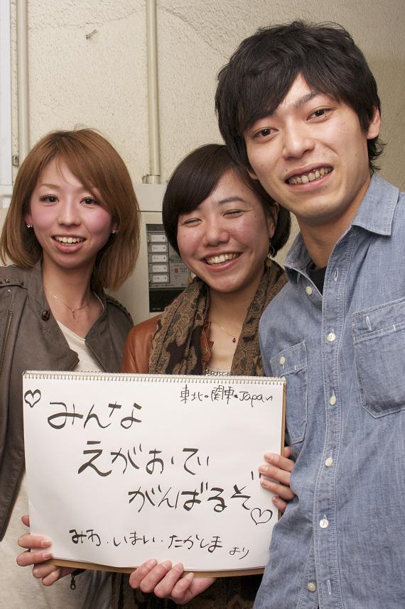 ☆クリ☆マミ☆てつや☆なま☆ミワ☆チズ☆ヒロヒロ☆ケンジロウ ☆ダイゴ☆けいこ☆ささ☆わたべ☆さとこ☆ゆみ☆さよこ☆てつ☆ タカノ☆ナオキ☆MAX☆しげ☆たく☆たくみ☆フクジ☆ゆうこ☆え つよ☆たか☆ナホ☆もりうち☆たかはし☆イマイ☆ハズ☆スギウラ ☆さとう☆トック☆たけやす☆さやか☆アユ☆スリー☆タカサゴ☆ スギ☆ちほ☆あんり☆ゆか☆ケイイチ☆くろ☆東京セブン、、、 more 署名してくれた方だけでもこれだけいます! 本当に、皆さん被災地を思っています! この先、僕らも行動・活動を続けていき、御参加して下さった方やそ の周囲にも同じ想いが伝わればと思います。 この度、僕達に御賛同して頂いた皆様方、本当に、ありがとうござい ました。 拙い文章ではございますが、東京セブンさんの協力のもと、こちらの Blogより御礼申し上げます。 皆様方の御協力のもと寄附金¥50500集りました。 僕達の故郷である宮城県へ、災害義援金として寄付したことを報告致 します。 主催者一同