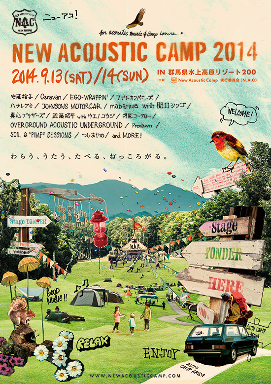 「わらう、うたう、たべる、ねっころがる。」をキャッチフレーズに、大自然の中で自由な鑑賞スタイルを満喫できる音楽フェス、それがNew Acoustic Camp(ニューアコースティックキャンプ)。
