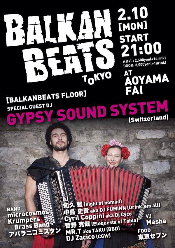 BALKANBEATS TOKYO feat. GYPSY SOUND SYSTEMは、2/10 at AOYAMA FAIにて開催!!!